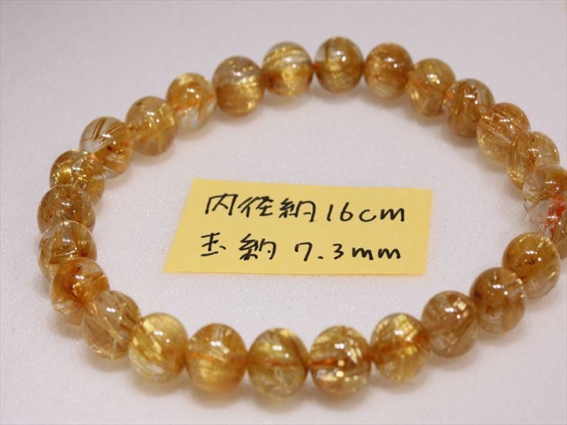 ビーズサイズは約7.3ミリ、内径は16センチほどです。
