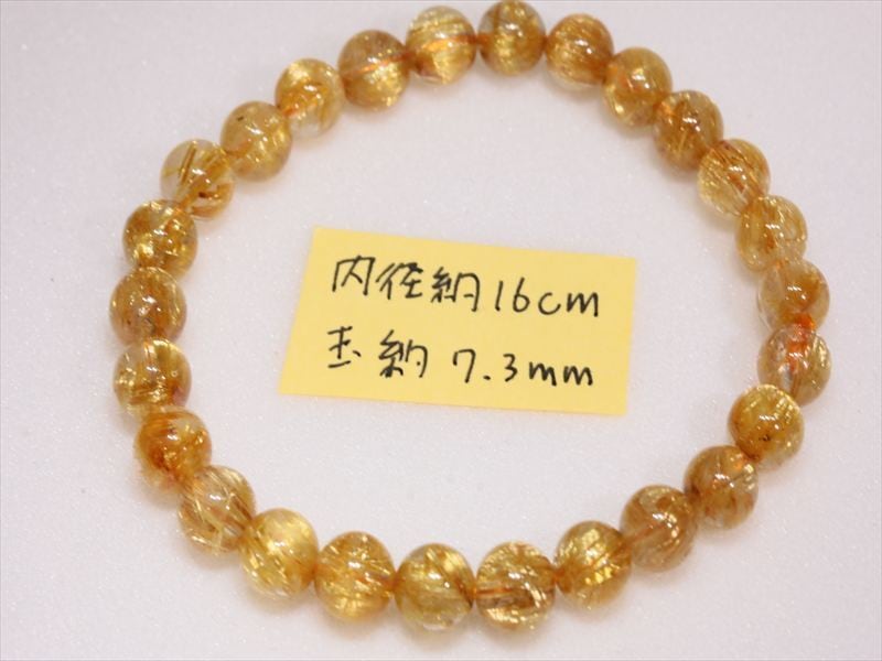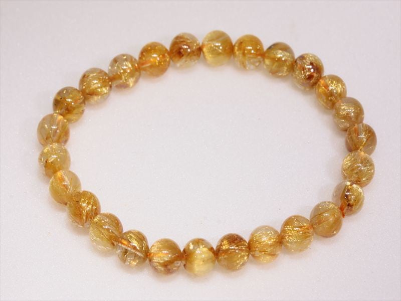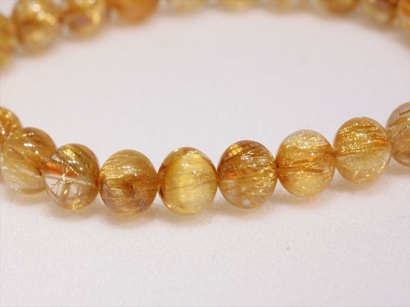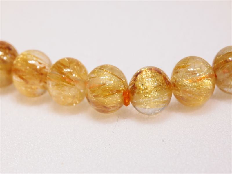 1ビーズごとのルチルの入り方にバラツキはありますがゴールドルチルですので