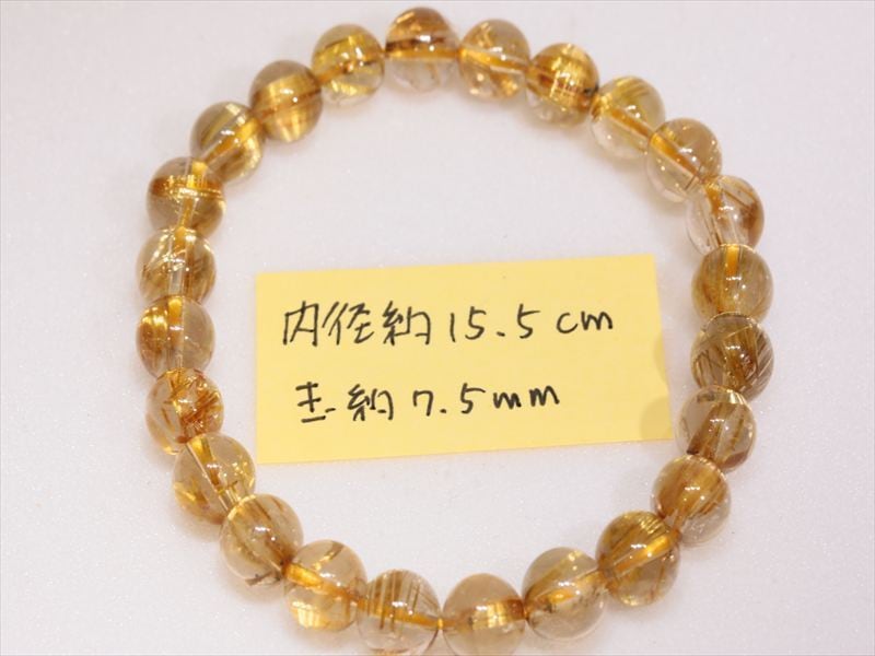 ビーズサイズは約7.5ミリ、内径は15.5センチほどです。