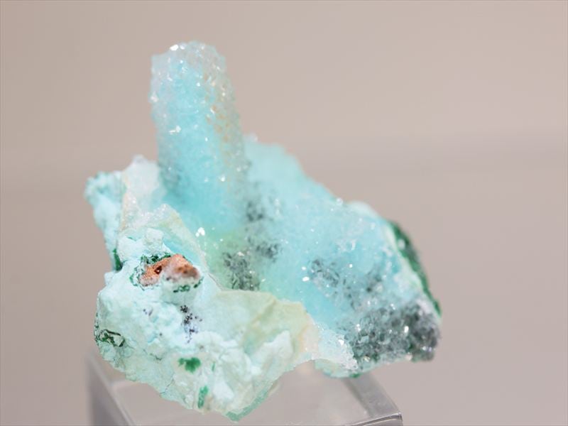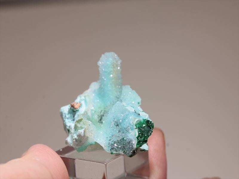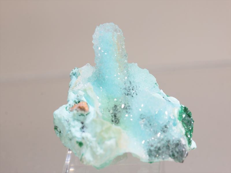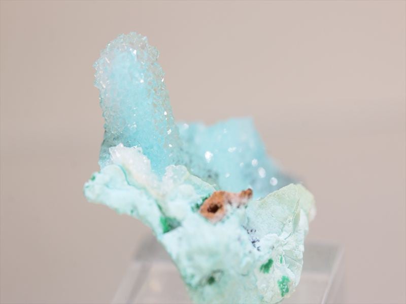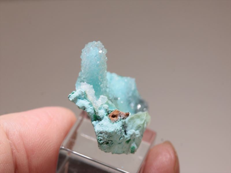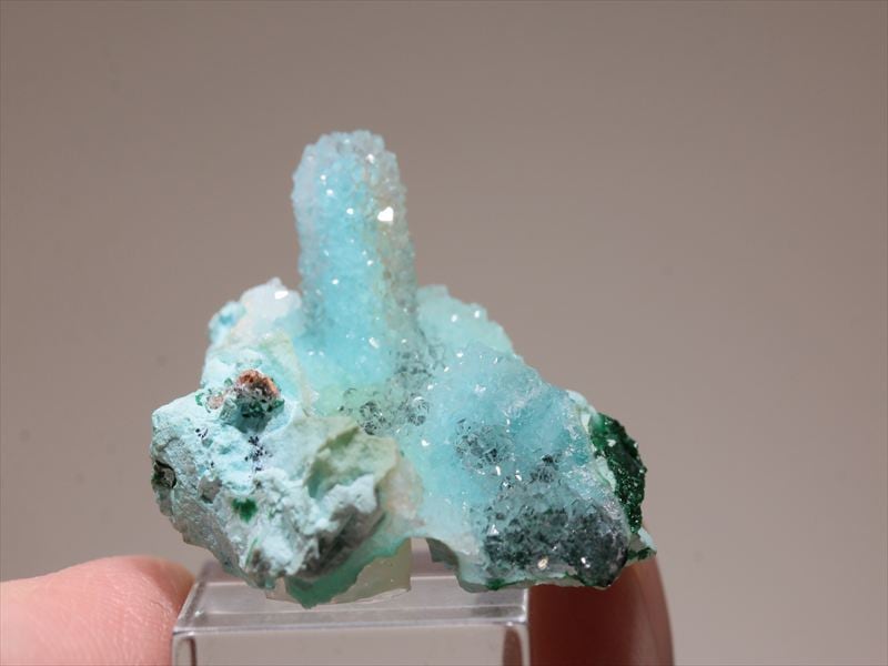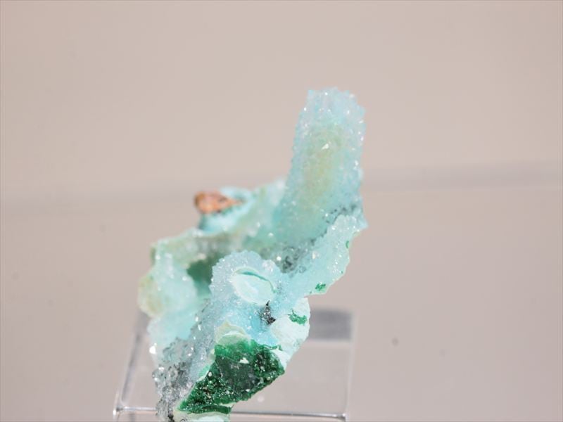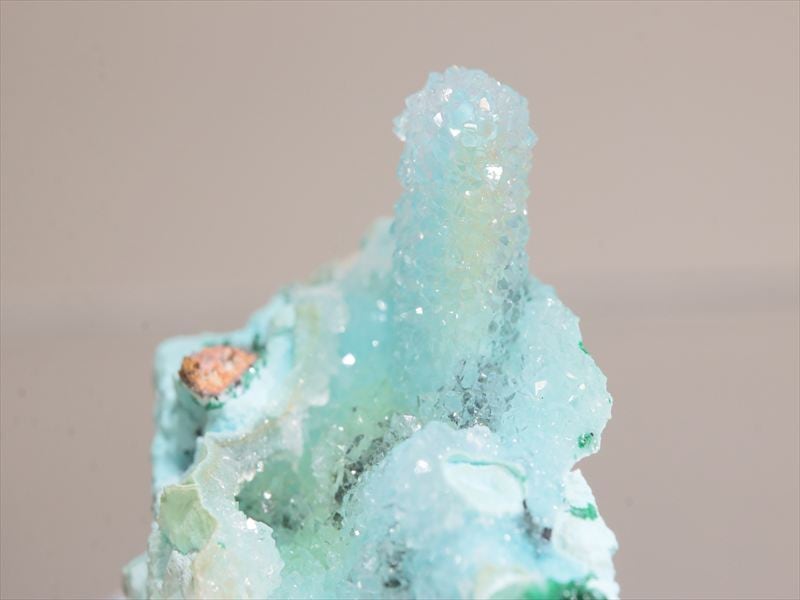 非常に透明度の良い、美しいドゥルーシー状のクォーツがクリソコラ全体を包んでます。