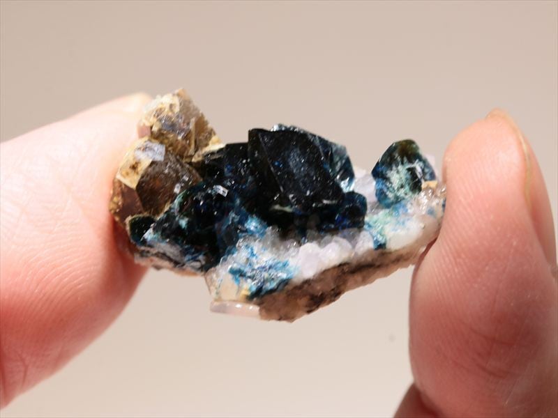 Lazulite & Siderite Yukon Canada 濃紺色と表面の光沢感がとても美しく、Sideriteとの コンビネーションが素敵です。可愛らしいサイズのLazuliteです。 重さ 約5g 全体サイズ 約27×14×11ミリ 全ての商品画像は光をあてて撮影しております。 ※天然石ですので不純物や色むら、自然のキズや欠けがある場合が ございます。また、写真と多少、色がことなる場合があります。ご了承ください。
