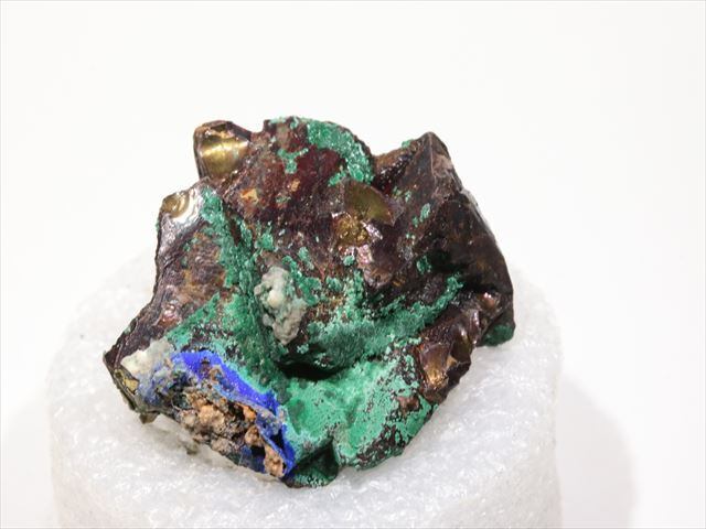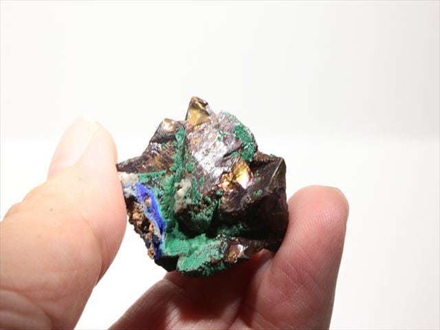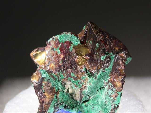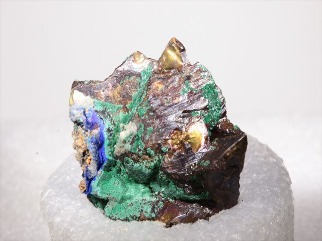 Malachite、 Azuriteで覆われたようなChalcopyriteです。