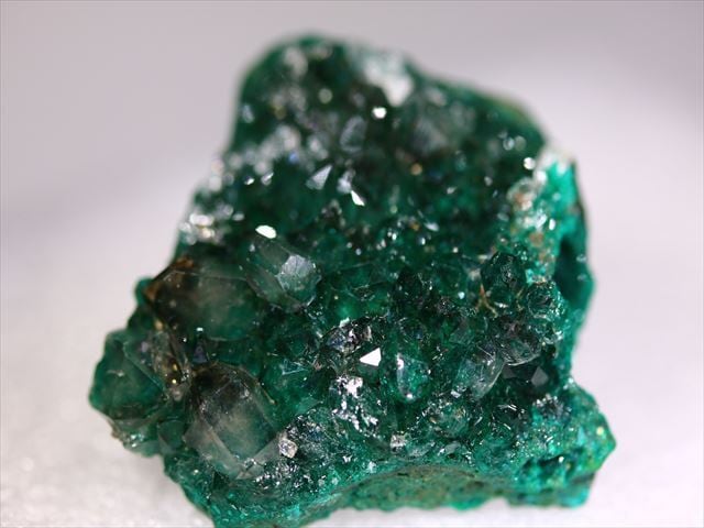 Dioptaseは濃いグリーン、その上に乗ったQuartzが非常に照り艶良く綺麗で魅力的です。